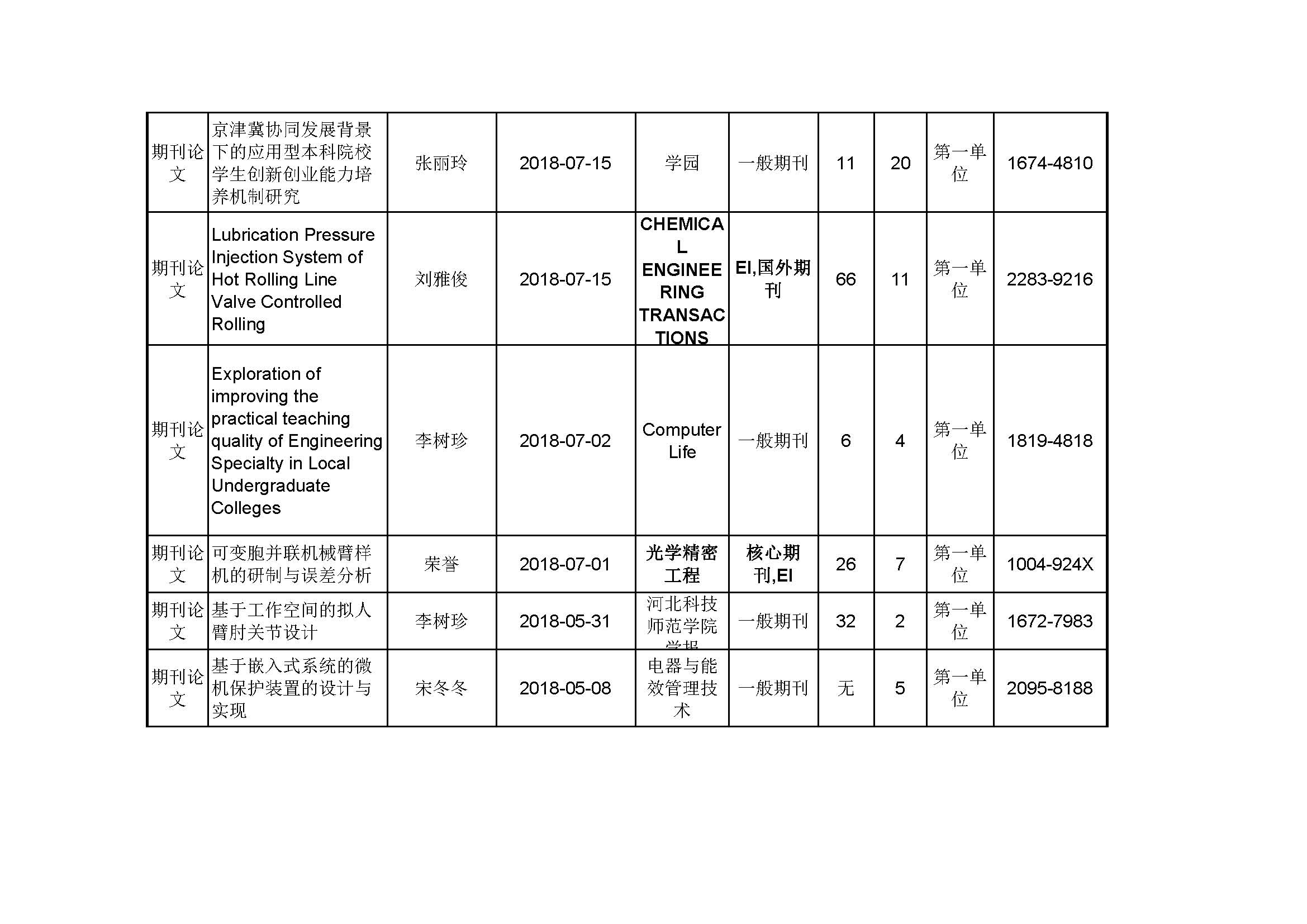 2018年度发表论文一览表